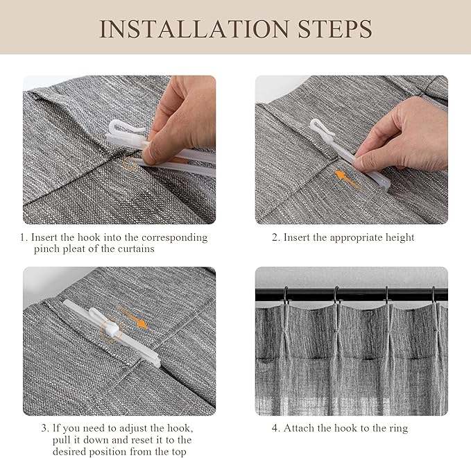 - More Occasion: Our linen look pinch pleated curtain presents a textured and natural feeling of look, making it suitable for any style of home decoration, whether traditional or modern, providing aesthetic feeling for your bedroom, living room, dinning room, offices,etc.