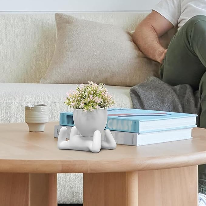 - 【Add Vitality To Your Life】 These human-shaped artificial plants decor has amusing appearance and relaxing actions which can bring small joy to you and may help you release your pressure when you see them around. It give more color to your life!