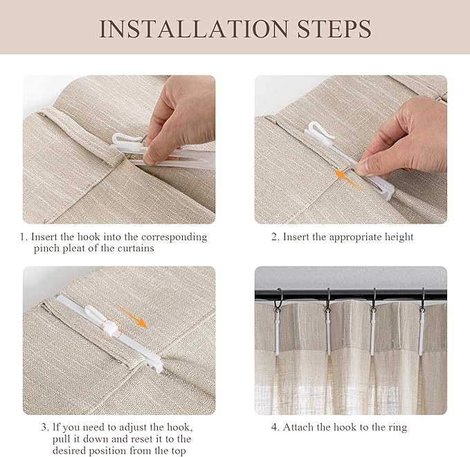 - More Occasion: Our linen look pinch pleated curtain presents a textured and natural feeling of look, making it suitable for any style of home decoration, whether traditional or modern, providing aesthetic feeling for your bedroom, living room, dinning room, offices,etc.