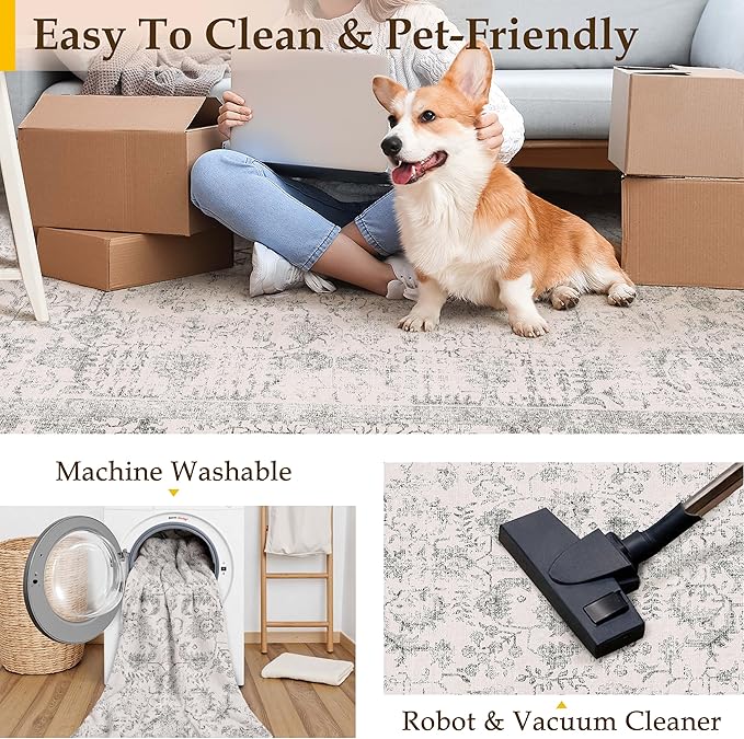 - Power Loomed Rug: Our non-slip area rug is made of durable polypropylene which is perfect for high traffic area and easy to mantain. The bottom of the washable rug has a durable TPR rubber backing. Anti-skid backing helps the rug to stay in place