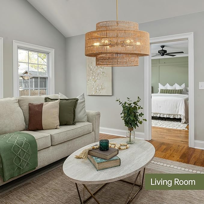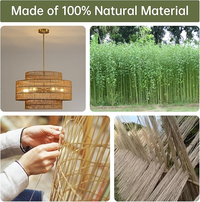 - [DURABILITY & ECO-FRIENDLY] Made from top-quality natural rattan, this Farmhouse Chandeliers Hanging Light Fixtures is designed for long-term use. It's fade-resistant, safe, eco-friendly and health-conscious. Plus, it comes with a thickened metal lamp body frame for added durability.