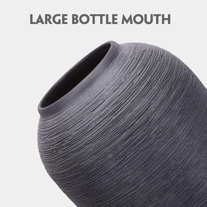 - High-Quality Matte Black Finish: Crafted with a refined matte black exterior, this vase offers both durability and style. Its minimalist design complements contemporary and rustic themes, serving as a versatile black floor vase or an elegant addition to your modern farmhouse decor.