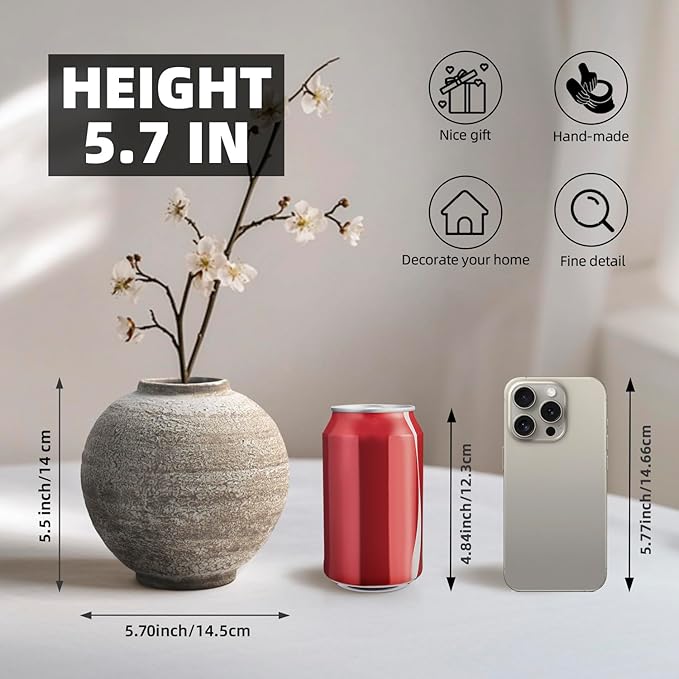 Ceramic Farmhouse Vase Rustic Decor,Pottery Decorative Flower Vases for Home Decor,Boho Vase for Table, Living Room,Bathroom,Shelf,Mantel Decoration,5.5 inch