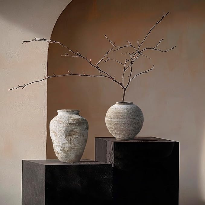 - ✿ Rustic Ceramic Vase - The boho vase is designed with retro and distressed surface, the surface of each vase is purely handmade,all are unique.Watertight design enables the ceramic vase suitable for fresh, faux and dried botanicals, or alone, it can stand on its own as a beautiful and independent vase.