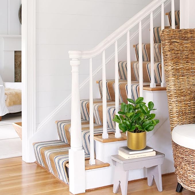 - High-Quality Materials: Made with textured green plastic leaves for a lifelike appearance, a sturdy metal gold pot for modern elegance, and cobblestones topping the planter for added realism and stability.