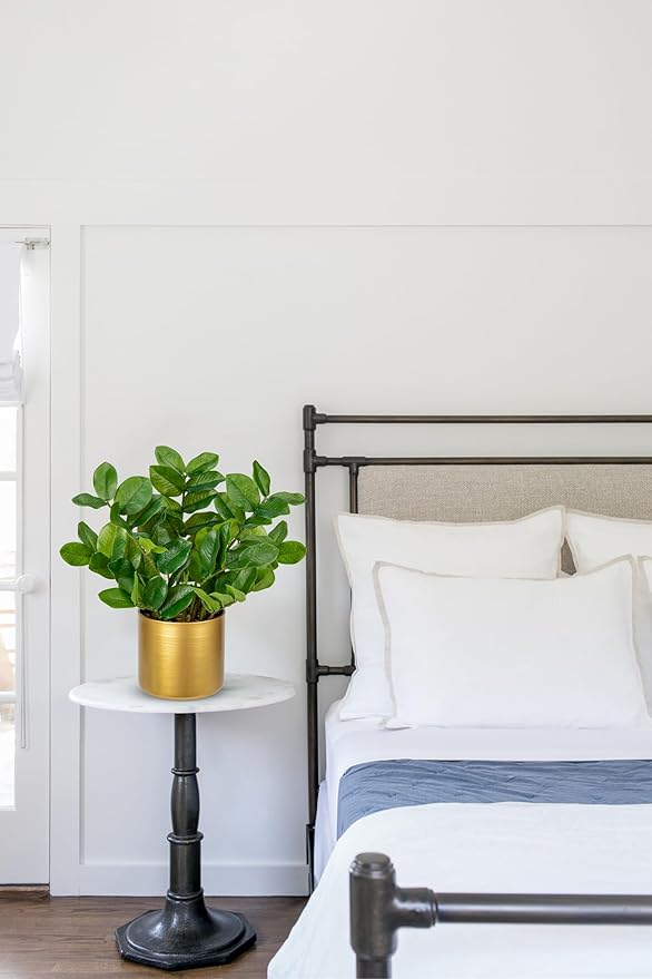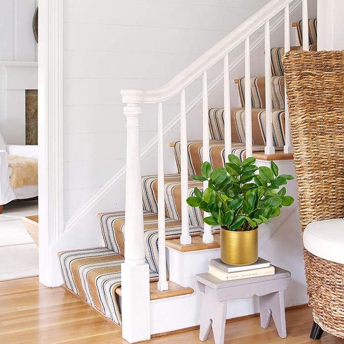 - High-Quality Materials: Made with textured green plastic leaves for a lifelike appearance, a sturdy metal gold pot for modern elegance, and cobblestones topping the planter for added realism and stability.