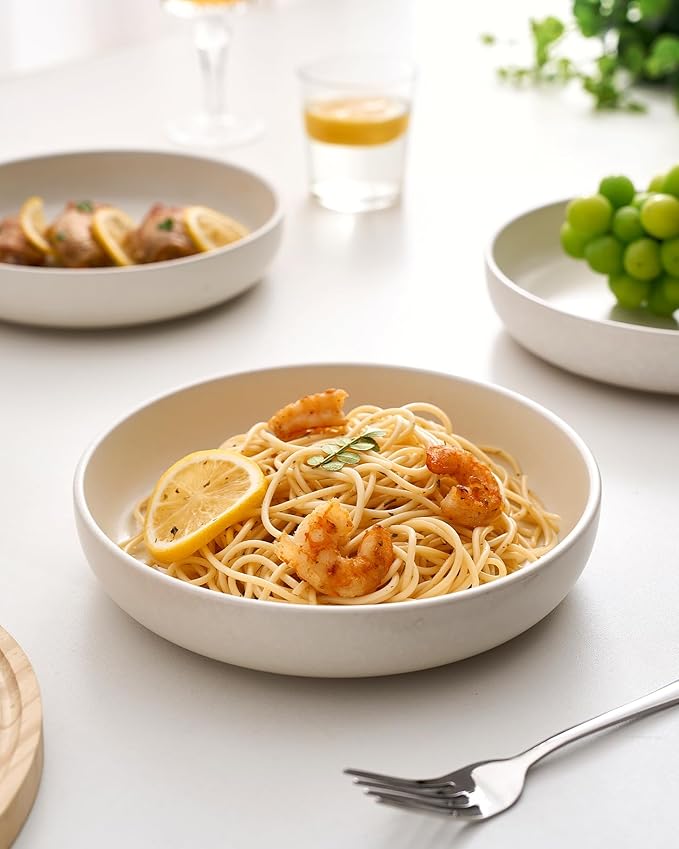 - PASTA BOWL SET OF 4 - Ideal size 8.5’’ Dia, practical depth 1.6’’ H, It holds contents both solid & liquid with ease- great for pasta, soup, dessert, ice cream, rice, beans and so on