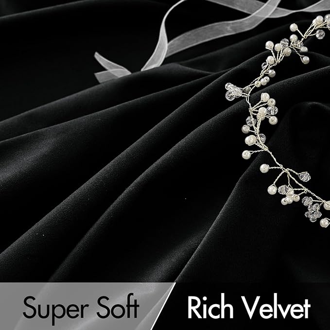 MIULEE Black Velvet Curtains 96 inches Long 2 Panels - Luxury Pinch Pleated Room Darkening Window Drapes for Bedroom Living Room Thermal Insulated Super Soft Blackout, Back Tab Rod Pocket