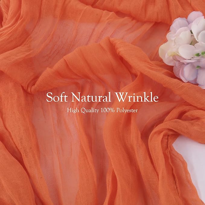 - 【Package Include】Our package includes 8 pieces orange cheese cloth table runners, this table runner fully expanded size is 35" wide x 120" length(10ft)/ 90 x 300 cm enough to cover 3-8 FT rectangle or round table, can even be spliced together for longer tables. Cheese cloth table runner can also be used as an ornament for chair cover sashes or arches . Which will add a romantic atmosphere to your occasion.