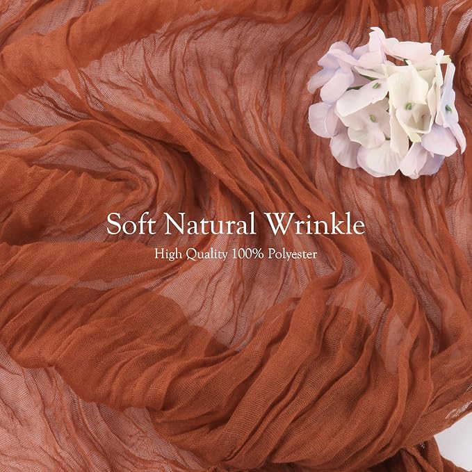 - 【Product Information】Our package includes 8 pieces of terracotta cheesecloth table runners, this gauze table runner fully expanded size is 35" wide x 120" length(10ft)/ 90 x 300 cm enough to cover 3-4FT rectangle or round table and drapes beautifully on table, which will add a romantic atmosphere to your occasion.
