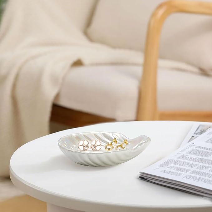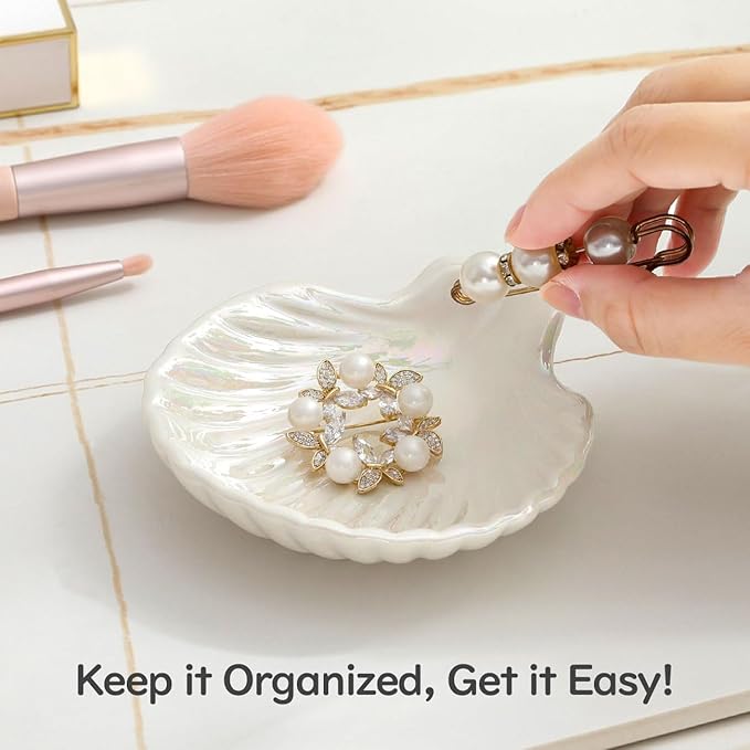 - Elegant Seashell Storage Tray: Our trinket tray features an exquisite seashell design, with fine texture and colorful glossy, bringing you into a beach-themed home. The perfect arc creates a great storage area to organize your precious jewelry in order, just like treasuring valuable pearls
