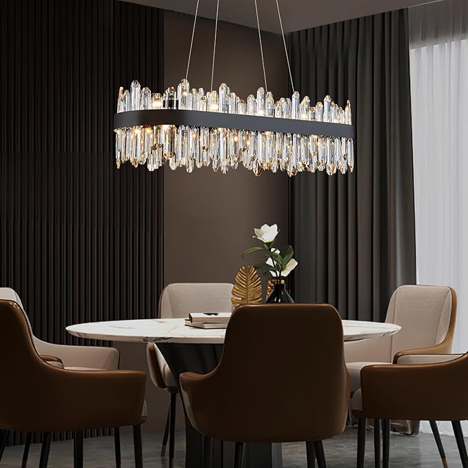 Modern Rectangular Crystal Chandelier, 20-Lights Black Raindrop Chandelier Lighting Contemporary Pendant Ceiling Light Fixture for Dining Room Living Room Kitchen Island L35.4''