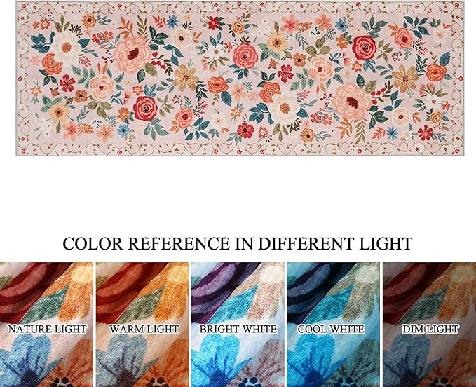 - Washable Rug: Designed for convenience, our floral rugs for bedroom resists stains with easy wipe-offs and tackles daily dust with a simple vacuum or sweeping robot. For thorough cleaning, it’s washing machine-safe.