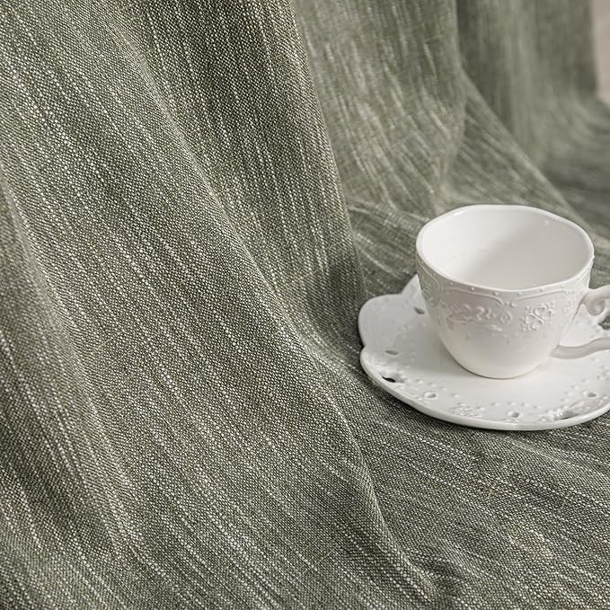 MYSKY HOME Short Curtains for Bedroom Semi Sheer Light Filtering Privacy Drapes for Small Window Linen Look Textured Boho Home Decor Backdrop Curtain for Parties, 50" x 63", Olive Green, 2 Panels
