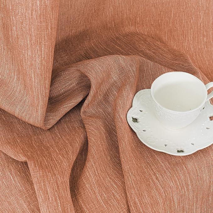 MYSKY HOME 90 Inch Burnt Orange Curtains for Living Room, Sliding Door Patio Drapes for Doorways Soft Semi Sheer Light Filtering Window Decor Back Tab & Rod Pocket, 50" Width x 90" Length, 2 Panels