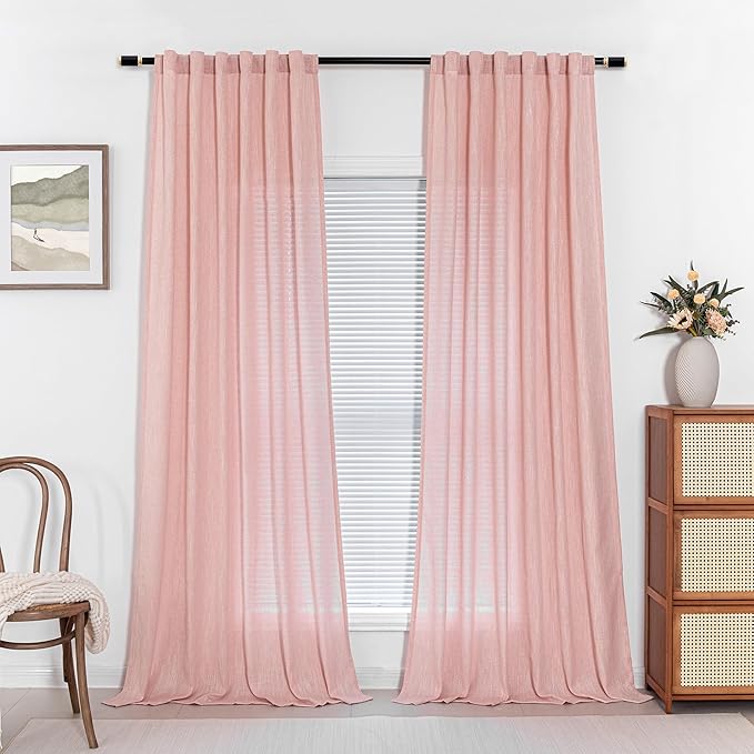 MYSKY HOME Blush Pink Living Room Curtains 2 Panel Sets, Soft Semi Sheers Light Filtering Back Tab Privacy Drapes for Patio Pergola Gazebo Nice Vertical Elegant Style, 50 x 95 Inches, Pink, Set of 2