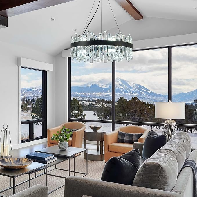- 【Luxury Black Crystal Chandelier】This exquisite crystal ceiling light impeccably complements any decorative style, acting as a stunning focal point in various spaces. It’s versatile in design, making it highly recommended for enhancing the ambiance in living rooms, dining areas, kitchen islands, bedrooms, and entryways, effortlessly elevating the aesthetic appeal of these spaces.