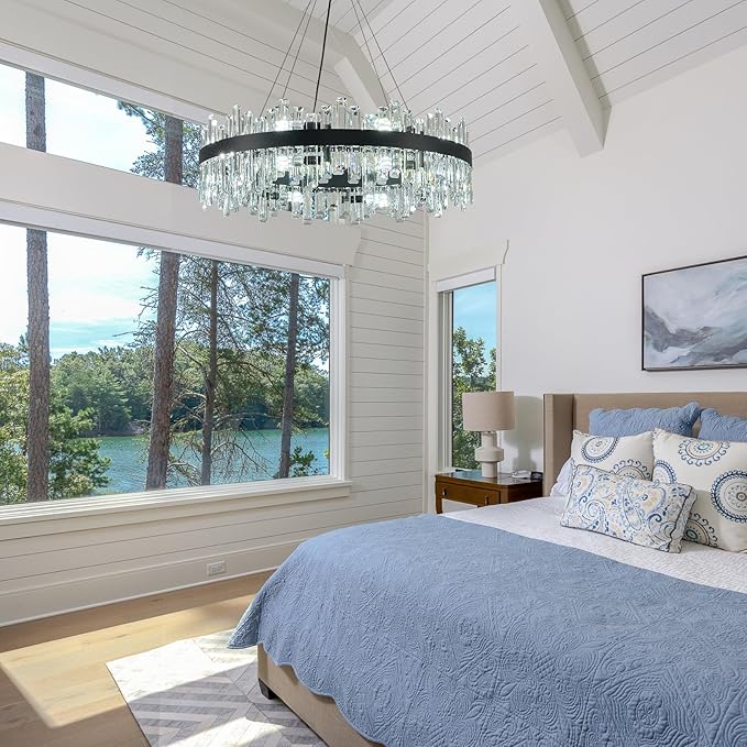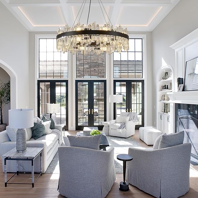 - 【Luxury Black Crystal Chandelier】This exquisite crystal ceiling light impeccably complements any decorative style, acting as a stunning focal point in various spaces. It’s versatile in design, making it highly recommended for enhancing the ambiance in living rooms, dining areas, kitchen islands, bedrooms, and entryways, effortlessly elevating the aesthetic appeal of these spaces.