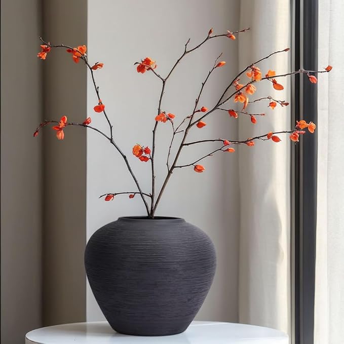 - Premium Quality Ceramic Vase: This rustic black ceramic vase is crafted from high-quality terracotta, featuring a unique textured finish that adds vintage charm to any room. Ideal for rustic modern home decor, it enhances your space with a touch of rustic elegance.