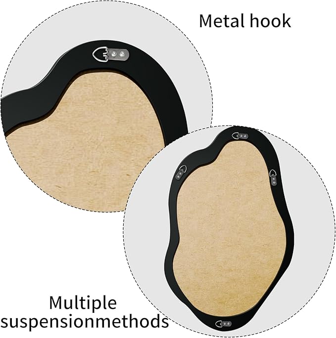 - [MULTIPLE WAYS USE]: The back of the wavy mirror comes with four hooks, which can meet the needs of horizontal or vertical hanging, and this mirror is also a good desktop mirror, you can put it on a suitable table, and different ways of using it will bring you different visual enjoyment.
