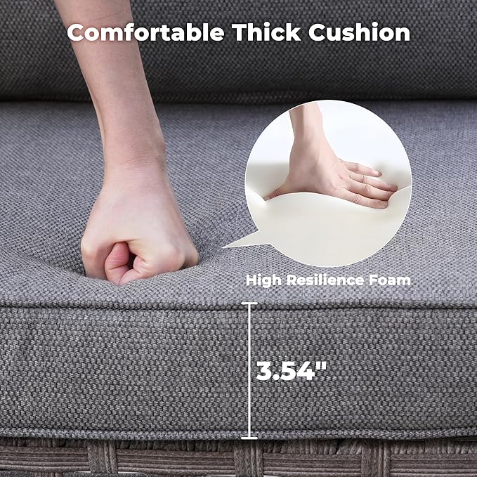 - All-weather Wicker Rattan: Our outdoor sofa sets have very durable wicker rattan for all-weather use and a natural texture with good coloring. The high-quality patio seating made of powder coated steel frame ensures good strength and stability.
