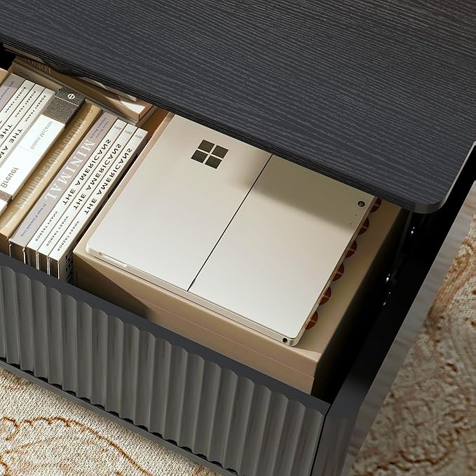 LYNCOHOME Fluted Coffee Table with Hidden Compartment, Wood Lift Top Coffee Tables, Modern Center Table for Living Room, Home Office, Black