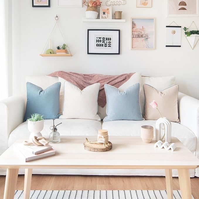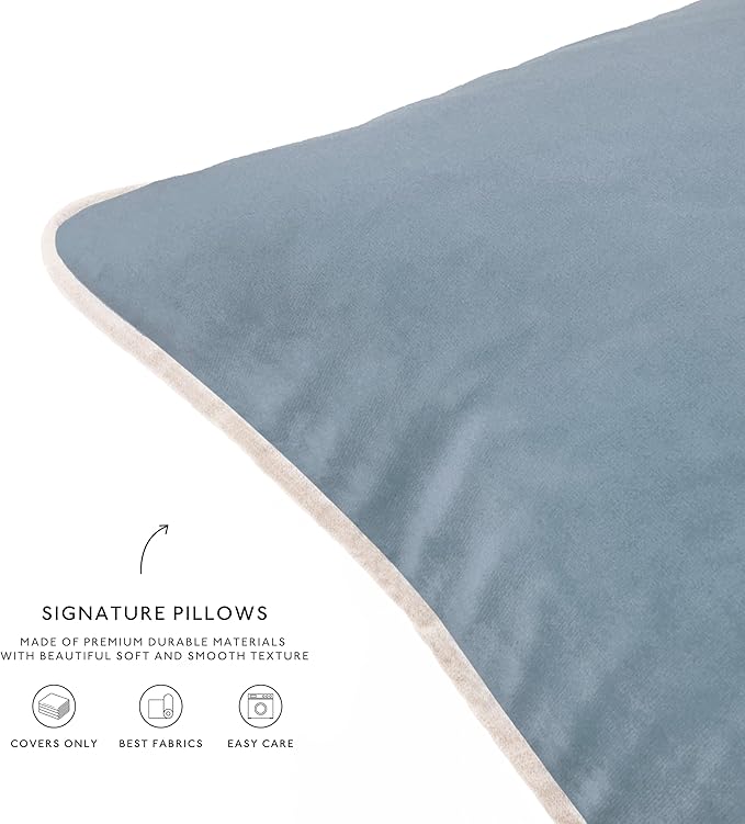 - SET OF 4: Includes 1 stone blue velvet pillow + 1 light blue velvet pillow + 1 beige velvet pillow + 1 cream velvet pillow