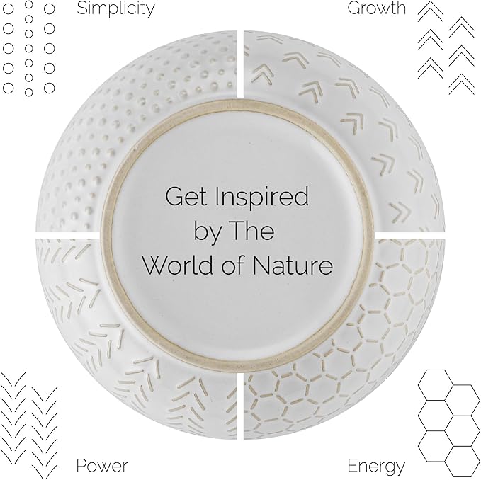 Stoneware Dinnerware Sets Service for 4, 12 pcs Reactive Glaze Plates and Bowls Sets, Embossed Boho Ceramic Dish Set, Highly Chip and Crack Resistant Farmhouse Plate Set, Ivory White