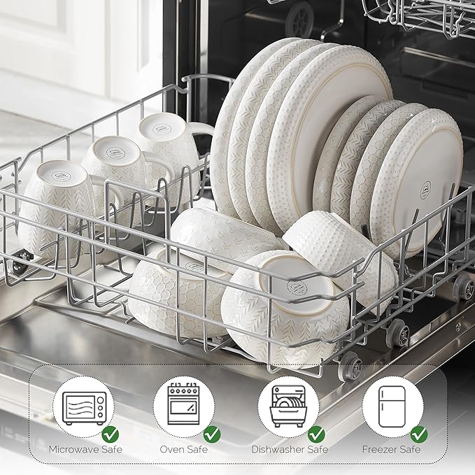 - [Safe and Durable] Lareina is committed to providing you with high-quality exquisite ceramic products. High temperature firing technology and natural clay make this dish set durable, high temperature resistant. Safe for dishwasher, microwave oven and other kitchen equipment