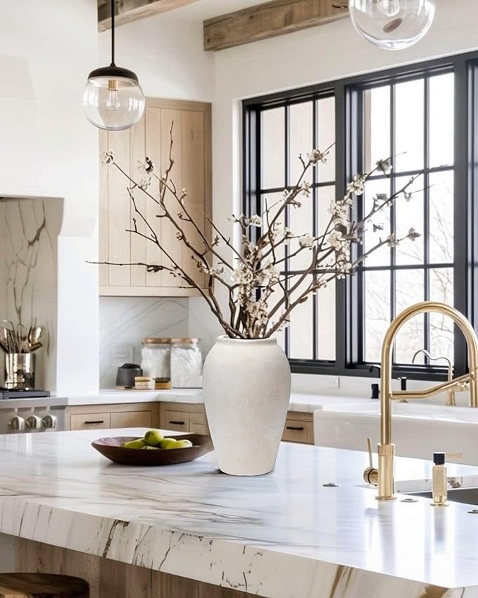 - Featuring three handles, and a rough unfinished matt exterior, our large decorative vase seamlessly integrates into any space, adding a touch of history and enduring elegance to your home. It's the perfect addition to your bookcase, kitchen styling, console styling or grouped together on a shelf with other decor pieces. Versatile and sophisticated.