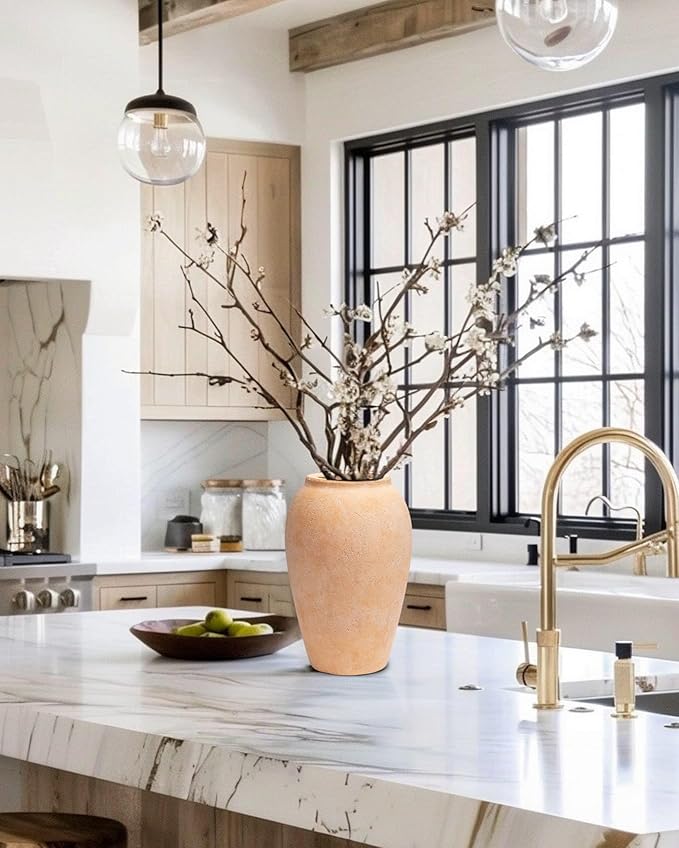 Handcrafted Flower Vase, 9.6" Tall Terracotta Vase, Vintage Rustic Ceramic Vase Décor, Wide Mouth, Matte Finish for Home Office Resto Café Décor
