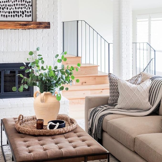 - Featuring three handles, and a rough unfinished matt exterior, our large decorative vase seamlessly integrates into any space, adding a touch of history and enduring elegance to your home. It's the perfect addition to your bookcase, kitchen styling, console styling or grouped together on a shelf with other decor pieces. Versatile and sophisticated.
