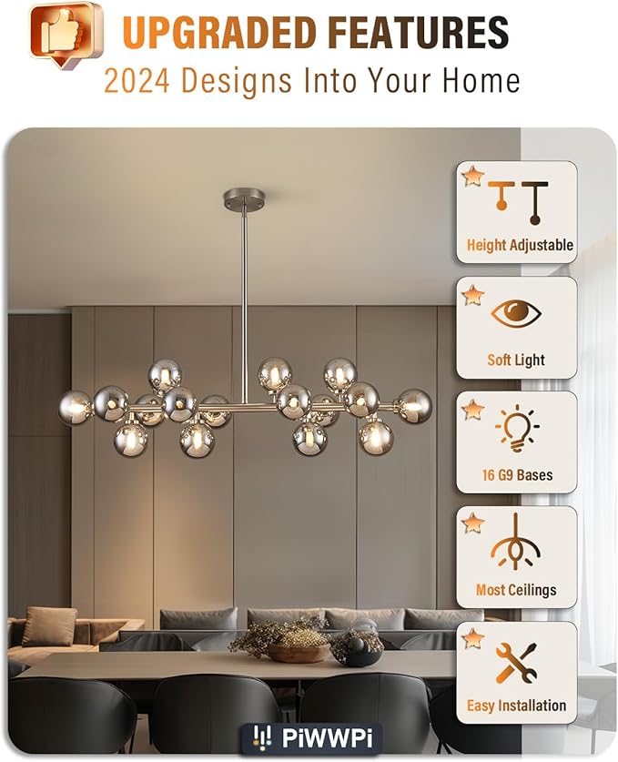 - Wide Application: The globe pendant light is suitable for a wide range of settings, including residential and commercial spaces. This unique chandelier can be installed in dining rooms, living rooms, kitchens, bedrooms, or even office spaces. Its elegant design and adjustable height make it a versatile lighting solution for any room.