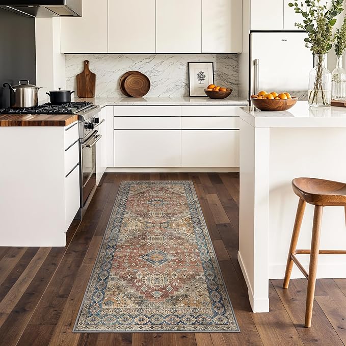 GENIMO Runner Rug 2x5 Non Slip Machine Washable Vintage Hallway Runner Rug, Low Pile Lightweight Rugs for Entryway, Hallway, Kitchen and Corridor, Antique Red