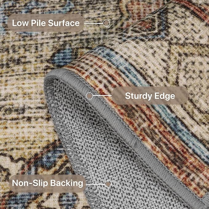 - Non-Slip Backing: Our washable rugs have a high-quality non-slip backing that secures floors from scratches and keeps the rug securely in place, avoiding any shifting or slipping. It serves as a comfortable, reliable and stable cushioning for frequently used areas such as the living room, dining room, kitchen, and hallways. Prolonged placement will not discolor your flooring.