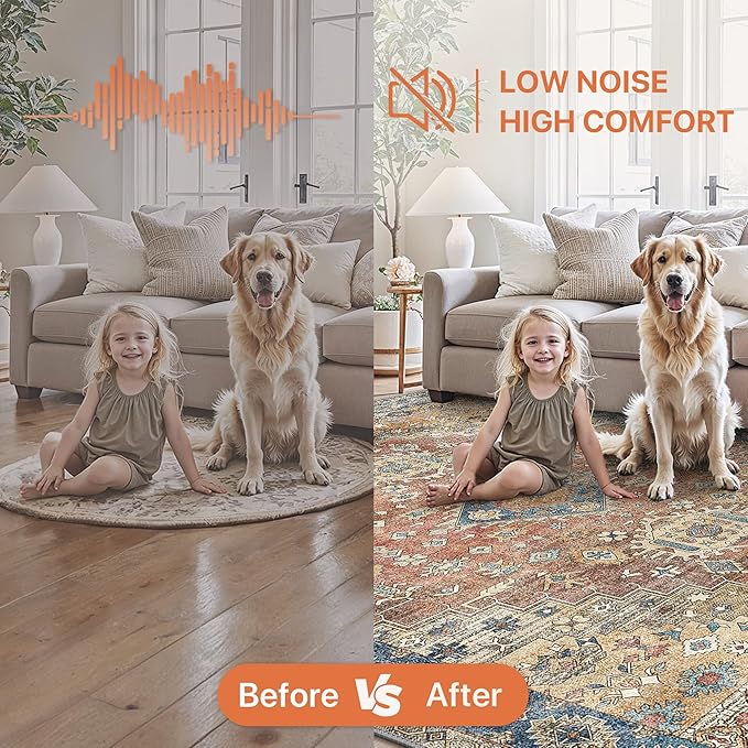- Long-lasting Rug: Made with long-lasting fibers and dense machine weaving, our low-pile rug stands up to heavy foot traffic. The soft surface is non-shedding, soundproof, and helps hide stains. The sturdy square edge brings extra resilience, making it suitable for high-traffic areas like the living room, dining room, and office. Any creases can be easily smoothed by rolling the rug in the opposite direction and weighting it down for 24 hours.