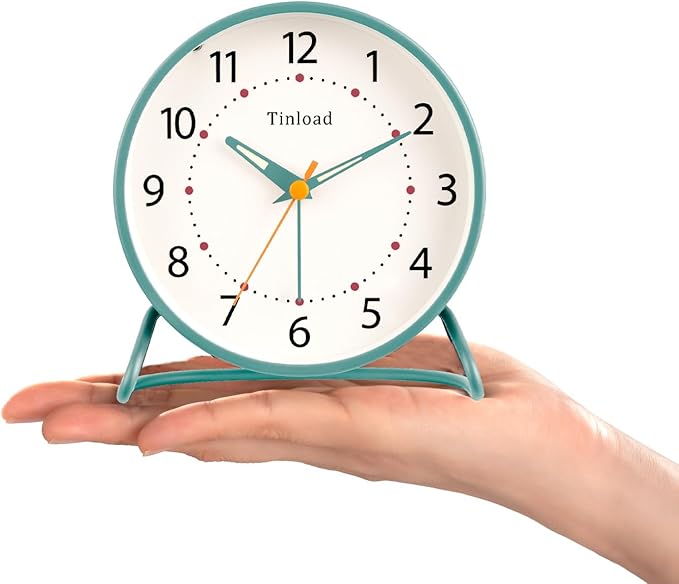 4.5" Antique Retro Analog Alarm Clock, Small Silent Desk Clock with Manual Light, Snooze, for Living Room, Bedroom, Bedside, Desk(Green)