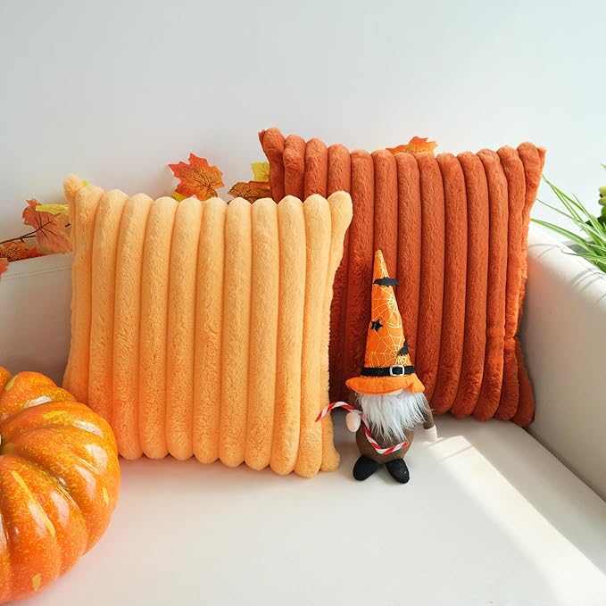 JOJUSIS Pack of 2 Faux Fur Plush Decorative Throw Pillow Covers Couch Cushion Case Soft Pillowcases Farmhouse Fall Home Decor (Rust, 22 x 22-Inch)