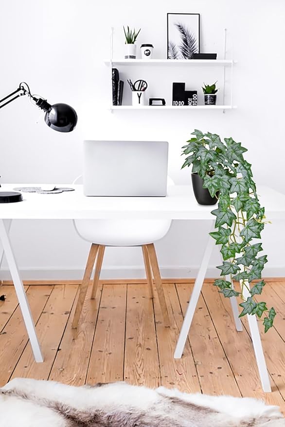 - Decorative Versatility: This ivy plant shines in any setting. Use it as a hanging plant to adorn walls, doorways, or windowsills, creating a cascading greenery effect. Place it on bookshelves, office desks, coffee tables, or in living rooms to bring a fresh, natural touch to your interiors. Whether displayed upright or draped over the edges of furniture, its flowing vines create a sense of effortless charm