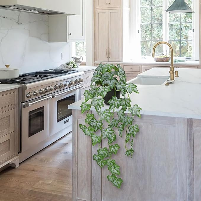 - Decorative Versatility: This ivy plant shines in any setting. Use it as a hanging plant to adorn walls, doorways, or windowsills, creating a cascading greenery effect. Place it on bookshelves, office desks, coffee tables, or in living rooms to bring a fresh, natural touch to your interiors. Whether displayed upright or draped over the edges of furniture, its flowing vines create a sense of effortless charm