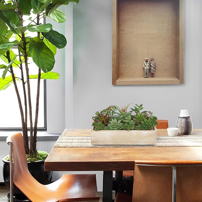 - Premium Material Design: Features high-quality polyethylene artificial succulents rooted in a sturdy rectangular wooden pot, topped with decorative pebbles for an authentic touch. The durable construction ensures stability while adding organic warmth to any space