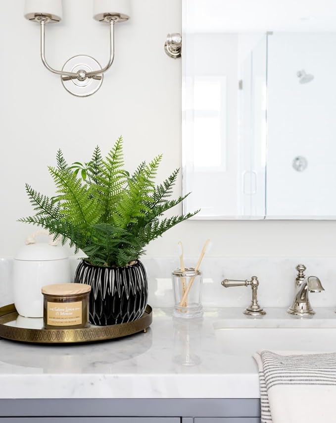 DILATATA Faux Plant Indoor in Ceramic Pot 13" Artificial Potted Fern Fake House Plants for Desk Office Bathroom Garden Decoration