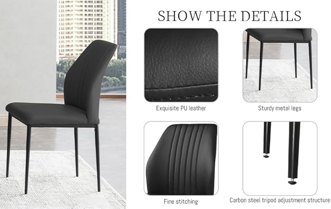 - Premium Leather Dining Chairs: Our Dining Chairs Are Made Of Premium Faux Leather And High Resilience Foam Padding. The Metal Legs Of The Chairs Support The Seats Securely And Have A High Weight Capacity. Maximum Weight Capacity: 300 Lbs. The Seat And Backrest Of The Stools Are Ergonomically Curved For Softness And Thickness.
