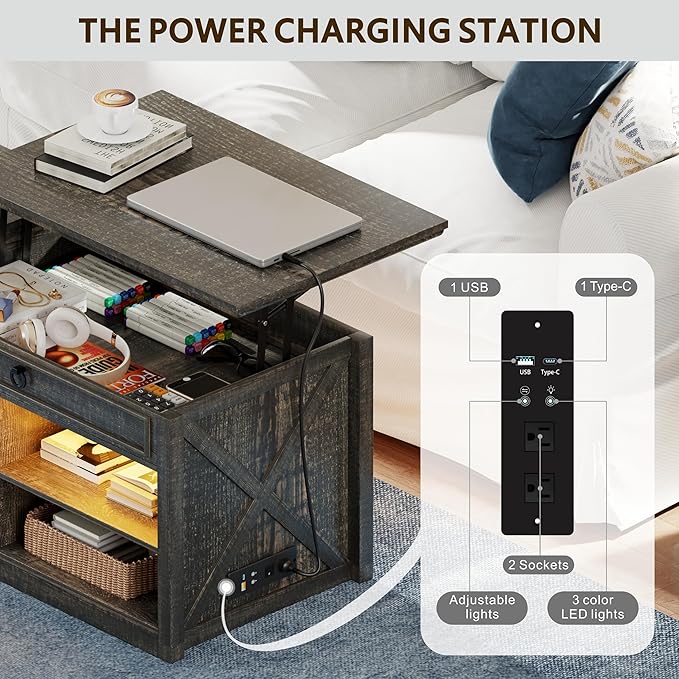 - 【Built-In Power Outlets & USB Ports】 - The living room coffee table comes with 2 Outlets & 2 USB ports, which can easily charge your phone, computer, headset, power bank, and other office devices. Charge your essentials within reach of the sofa