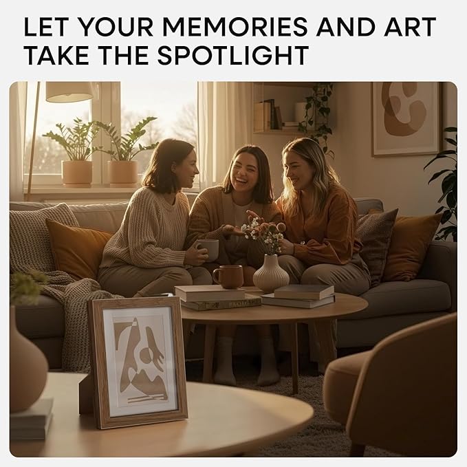 - LUXURY TEXTURE, NEVER LAMINATE Crafted from real oak with subtle grain and a matte finish, this frame delivers an upscale gallery look—not a mass-produced feel.