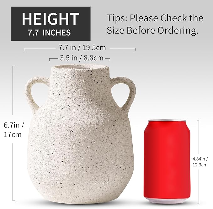 - [Design Inspiration] The SURE YUESI double-handle vase is inspired by American flower arrangements. Its simple farmhouse vintage design can effortlessly match any decor style, making it the centerpiece of your living room, bedroom, dining room, coffee table, hallway, bookshelf, fireplace, or office. Mix and match as you like with this white ceramic vase, perfect for Scandinavian home decor and vases for flowers hewego.