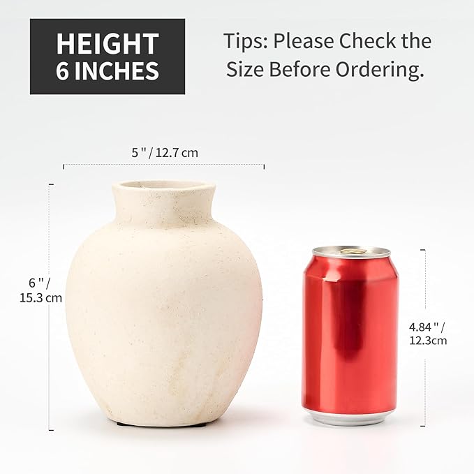 - šššš¬š®š«šš¦šš§šš¬: The rustic vase measures 6" height and 5" width with 2.4" opening.Perfect for greenery and dry or faux florals,but also can hold water for fresh flowers.The vase itself can be displayed indoors or outdoor as a fine decorative piece.