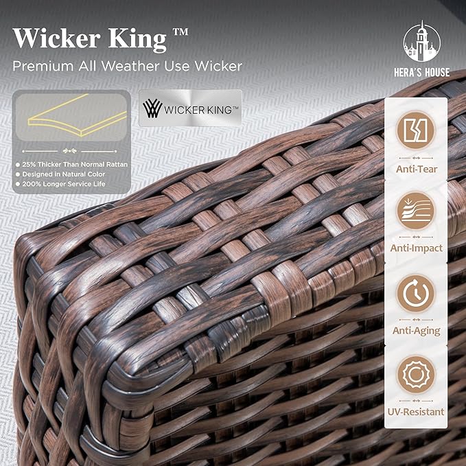 - 【All Weather Wicker】The outdoor bistro set won't fade or dry crack with high-performance, handwoven weather-resistant PE rattan. The steel frame is built with E-Coating& Powder-Coating which makes the outdoor seating resistant to sag, rust or aging