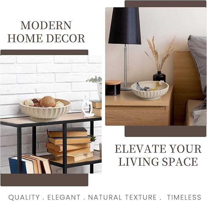 Large Decorative Bowl - Fruit Bowl for Kitchen Counter - Modern Decorative Bowl for Home Decor,Key Bowl for Entryway Table - Artificial Stone Beige