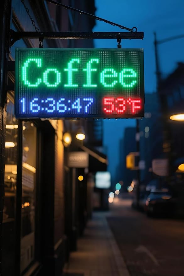 - Multi Functional Programmable LED Sign: This LED sign programmable full-color waterproof with remote control, equipped with a paper version of the user manual. The LED light sign has a lifespan of over 10000 hours AC 80-240V, hanging type.Friendly Tip: When you activate the "LED CLOCK" option, you'll see the screen flicker briefly. This is a visual confirmation that your new settings have been applied and saved.